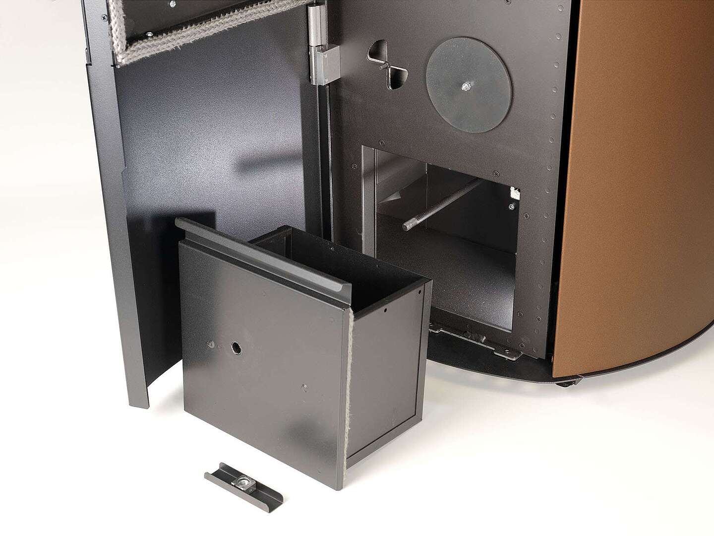 Ausgestattet mit fortschrittlichen Sicherheitssystemen bietet es zahlreiche Vorteile: 5 vorprogrammierte Brennstoffmenüs; mögliche Ascheentfernung aus dem Brenner ohne Abschalten des Geräts (Asche trotzdem heiß!), was zu Energieeinsparungen führt; ein doppelter Zündwiderstand verkürzt die Zündzeiten und gewährleistet einen dauerhaften Betrieb und ein flammhemmender Schutz gegen Rückbrand im Pellettank durch ein doppeltes Schneckenmanagementsystem.